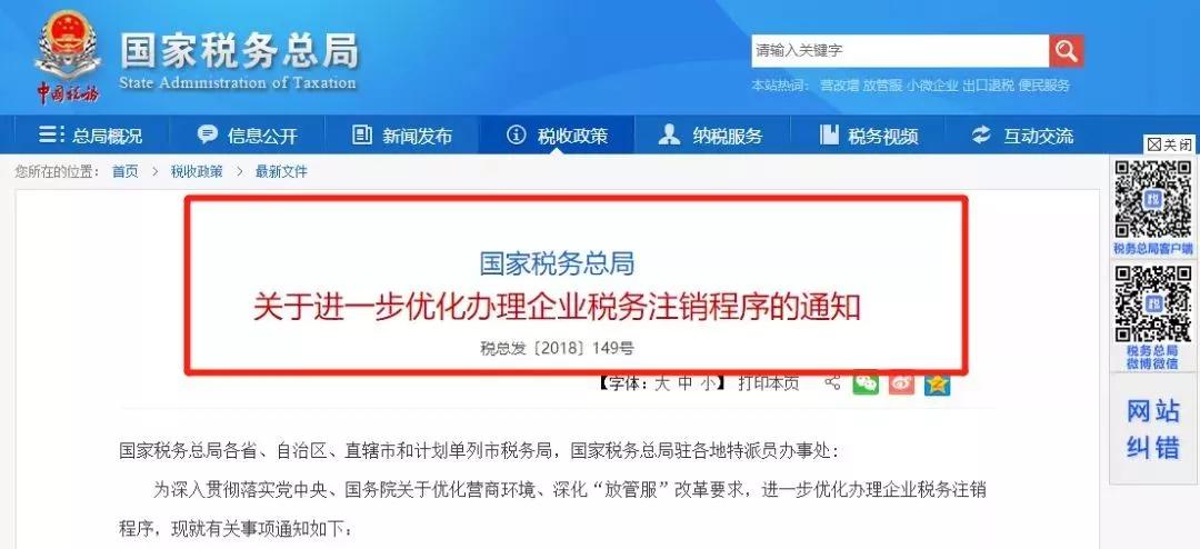 去年9月份,国家税务总局发布了(税总发[2018]149号),《通知》明确2018年10月1日起,企业注销流程大大简化!